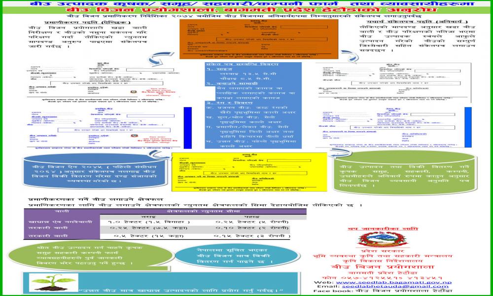 बीउ बिजन निरीक्षक तथा बीउ बिजन विश्लेषकहरुलाई प्रदान गरिने अभिमुखीकरण तालिम सम्बन्धि सूचना 2082-03-22 Closed !!!
