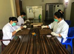 प्रयोगशालामा वीउको शुद्ता परिक्षण गर्दै कर्मचारीहरु