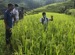 धानको खेत निरिक्षणको क्रममा आंकडा लिदै पार्वतीपुर चितवन